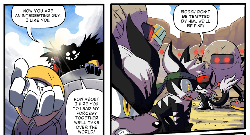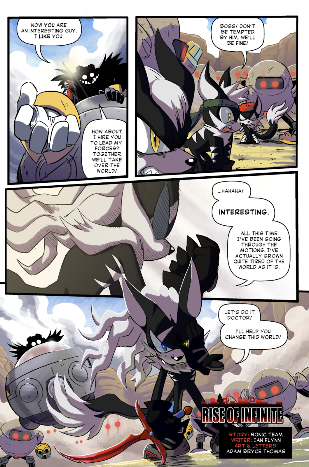 In the case of the former option, however, he may essentially serve a role similar to Eggman, where pursuit of a greater power leads him towards something far greater in scale. Eggman has attempted to control Gods of Destruction, seized government conspiracies for war, and the very darkness of the planet in his efforts to conquer the world. Infinite may end up doing the same when given the opportunity, in which case he may actually fall into the same failings as Eggman in being way over his head.