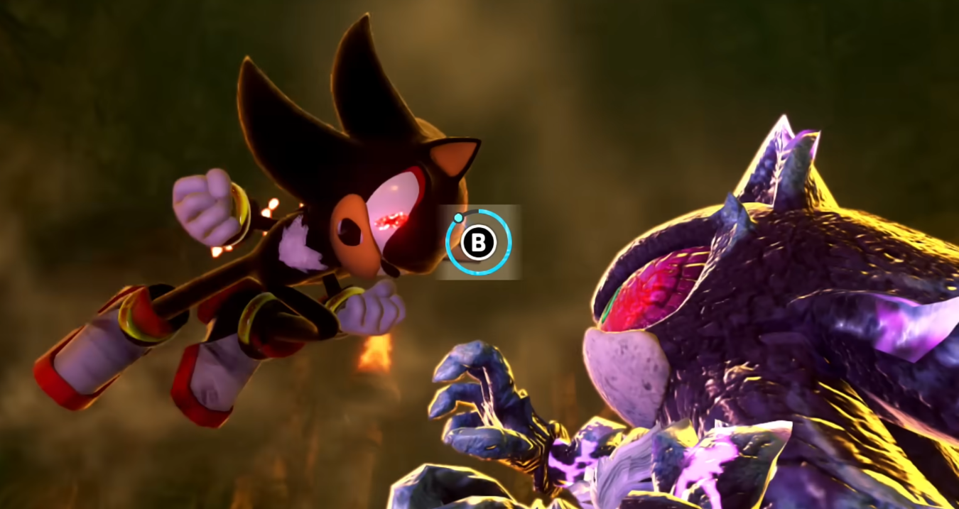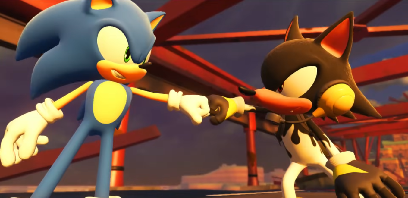 This was already true of his handling in the main story, with underwhelming confrontations between Sonic and the Avatar dulling his reputation and eventual demise, alongside Sonic Forces’ various quirks, usually lacking in animation, budget, or execution to sell the ideas they present the viewer with. The final battle might be the most infamous of these examples, presenting the viewer with a scene of Sonic character models weakly doing battle with Phantom Ruby illusions, sometimes lacking combat animation outright. When juxtaposed with the concept art for the same scene, it’s clear that the final execution did not realize the optimal outcome for such an action set piece.