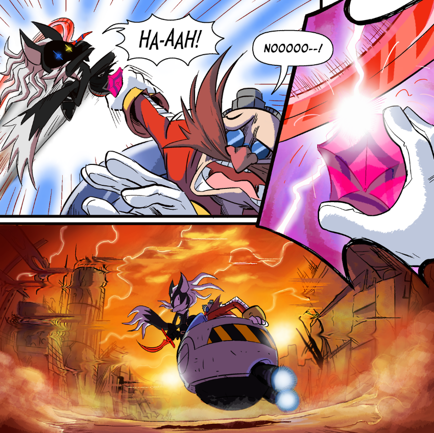 Eventually the heroes discover that Eggman is behind this latest scheme, and with the help of the emeralds, revive a few of their friends from these false realities in order to put a stop to his plans. Eventually they discover a large facility under the earth, emitting power similar to the Phantom Ruby being applied to the earth itself, in an attempt to fool it to override its reality. The true function of the machine wasn’t this simple, however, as it turned out that energy was being drawn from the inhabitants of the world overriding the reality of the planet themselves, and the “cognitive friction energy” between the two was being funneled into this facility. In truth, the realities around the world reflected latent desires of the people among them, creating a dream-like planet where various realities emerged.