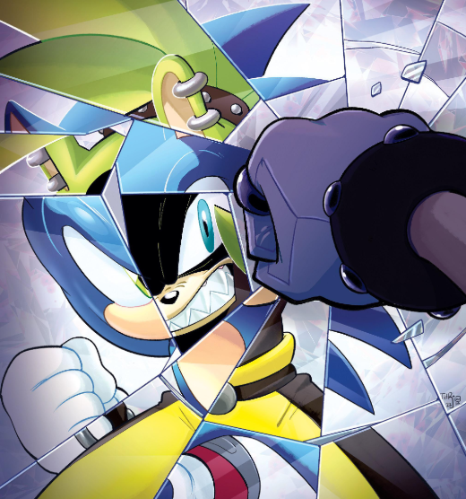 Throughout the rest of the “Otherworldly Comedy,” other Sonic characters are depicted in similarly unusual yet mundane scenarios. Amy becomes a fortune teller for the magical princess Blaze, Vector becomes a superhero saving the city on an empty stomach, Princess Elise is assisted by Silver to overcome melancholic childhood memories and succeed at an ice skating performance, and Tikal and Chaos run a pizzeria in the Mystic Ruins, as chao and the Knuckles clan exist peacefully side by side. In many ways, the lives of the characters involved seem to be almost dreamlike and happy in nature, though not all characters are affected. Tails, who has found himself in the middle of a Romeo and Julliette play, is somehow confused about the events taking place around him, and attempts to snap Marine, playing Romeo, out of the illusion. Marine almost snaps out of it at the mention of the Sol dimension and Blaze, but being Marine, remains stubbornly insistent that this is their reality, and that she needs to lead their band, the Coconut Troupe, to new theatrical heights. Tails ends up finding Sonic outside the building, however, and the two of them appear to be the only characters unaffected by the anomalies, which have transformed Sonic’s world into a world of alternate realities.