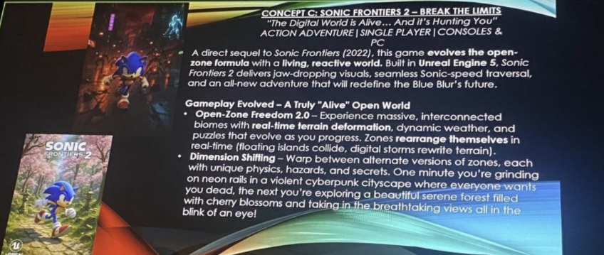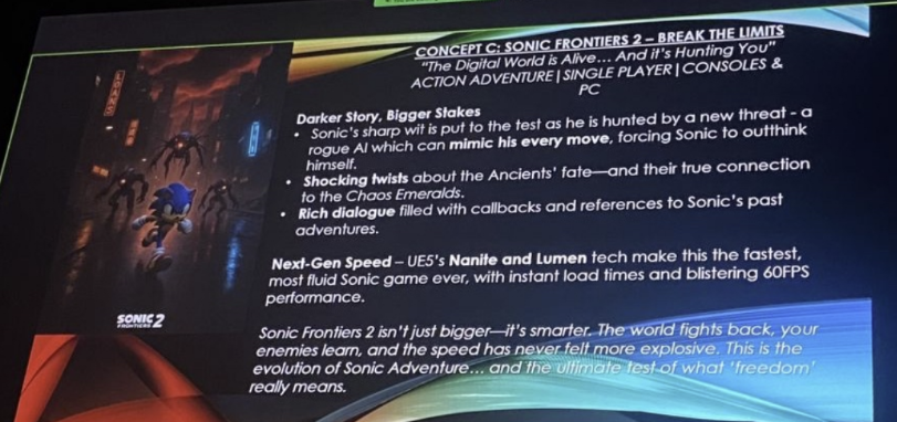 In speculation further removed from the discussion surrounding the Chaotix Casefiles, some of the fandom have revisited a previous rumor with this context in mind. It is important to note that this rumor has not been verified by Tails Channel News as an actual leak, and no official corroboration has been made regarding its veracity. Regardless, the rumor involves a purportedly internal “survey presentation” for upcoming Sonic game concepts, that was shared online during June of 2025. Due to the speculated return of the Phantom Ruby, listed aspects such as real-time terrain deformation, zones that rearrange themselves, dimensional shifting, and setpieces like digital storms have drawn speculation that such a premise could service the overpowered gem and its reality altering properties. Other details such as a city where all the denizens “want you dead” can also be paralleled with another function the ruby has shown in the past, wherein Shadow the Hedgehog was teleported into a virtual dimension, and Omega and Rouge were impersonated and used by Infinite to psychologically toy with the Ultimate Lifeform.